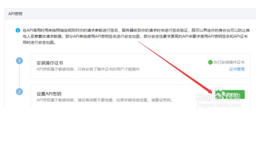第五步:再點擊左側的API安全,進入API安全管理的頁面。如果頁面提示你安裝操作證書一類的,就按照提示安裝,然后重新進入這個頁面。