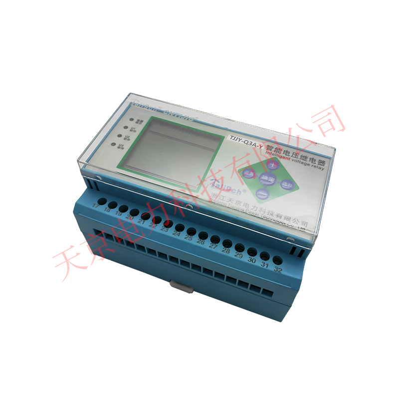 TJJY系列三相電壓繼電器是帶延時功能的液晶顯示交流智能電壓繼電器。可用于發電機,變壓器和輸電線的繼電保護裝置中,作為過電壓或欠電壓閉鎖的動作元件。該繼電器由數字電路構成執行回路,具有靈敏度高,實時測量并顯示當前電壓值等特點。多相輸入時,各相同時整定,出口同一繼電器。